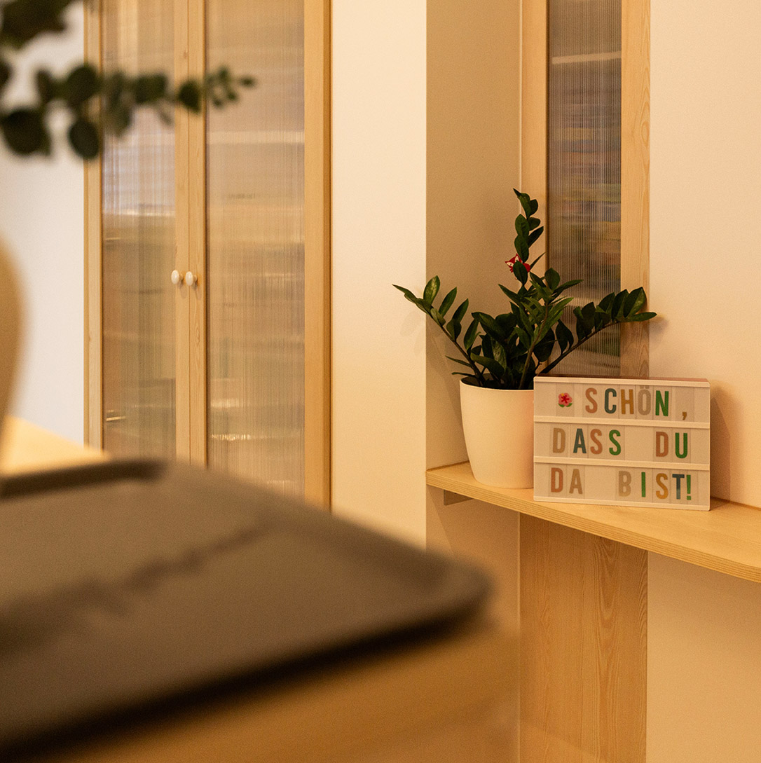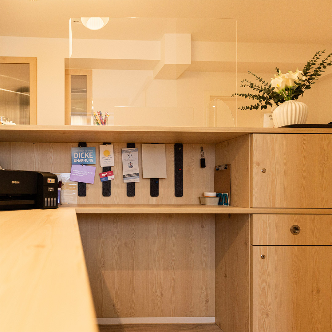 Unser Innenausbau unterstützt genau diese Arbeit – mit klaren Linien, hellen Holzflächen und einer Atmosphäre, in der man direkt ankommt und sich wohlfühlt. Das Ganze war auch ein kleines Herzensprojekt, denn Melissa ist eine gute Freundin unseres Chefs Thomas.